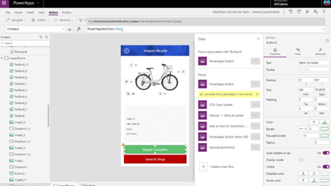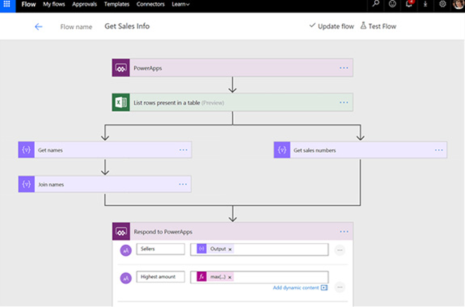 Use Power Automate to design logic for your Power Apps. Instead of writing code, use the point-and-click flow designer to build out your business logic. Easily run flows in your app with buttons, actions, and data inputs. These flows can fire-and-forget, or return data back to your app to display information to the user.